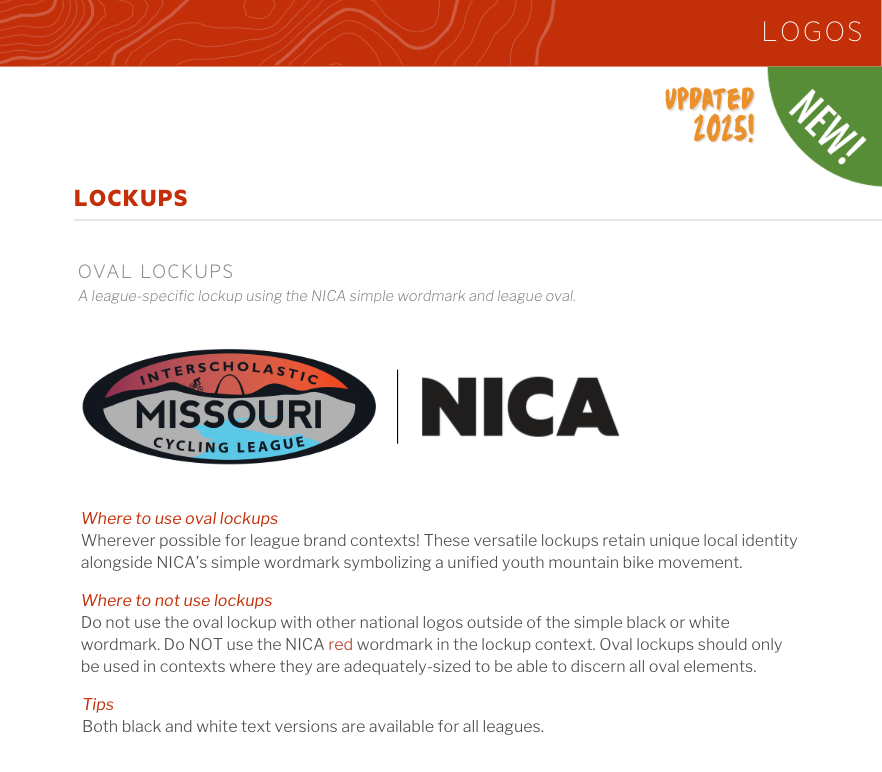 All leagues now have oval logo lockups (featuring league ovals + the NICA wordmark in black or white...