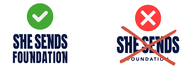 - Updated logo files: There is also a slight change to their logos: “Our old logos had “foundation” in smaller font. Our edited logos have “foundation” in the same size font as She Sends. It’s important to us that our brand is consistent across all platforms, so please swap the old with the edited.”